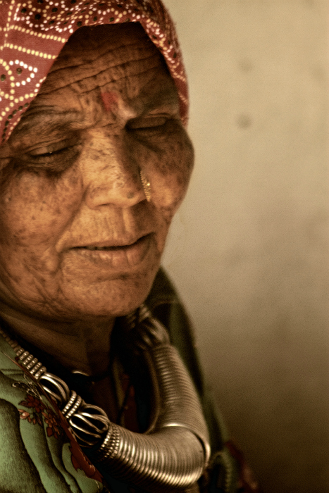 I recently visited Kutchh,western most region of India. A desert area bordering neighbouring country Pakistan. Kutchh has its unique culture. Traditional arts and crafts of Kutchh region are something which any craft lover would die for. I have photographed here, traditional Kutchhi lady wearing her traditional Silver jewellery. One can also see tattoo marks on her face.