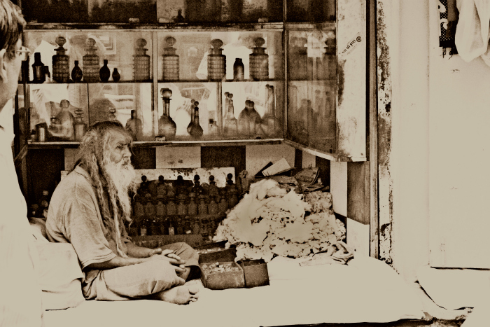 “Attar” or “Ittar” , means natural perfume made out of flowers,herbs etc. “Attarwallah” means person ,who sells such perfumes. I came across this very traditional “Attarwallah”, in one small town of India. I decided to give vintage look to this photograph,as “Attarwallah” as well as his shop had old time look about them.
