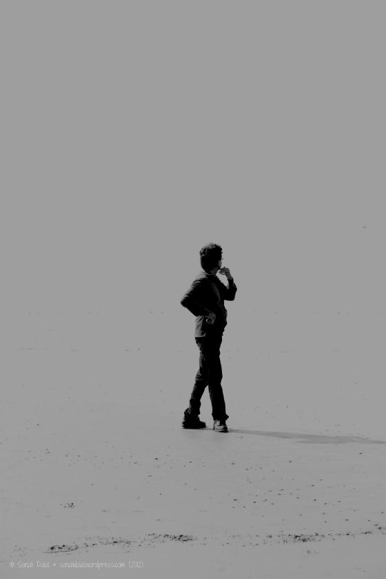 I’m in two minds about the few details of the ground in the foreground. You have left them in here and they do help to put the figure in context >>> but I wonder how the photo would be if ALL other detail except the person were to be removed, ie both the hints of the ground and his shadow – the effect might be quite striking. Adrian