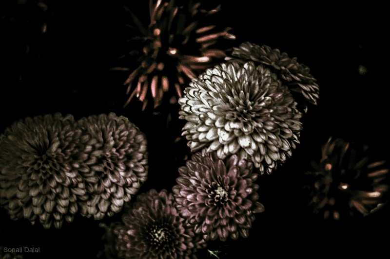 Very good indeed, Sonali! I like the overall composition – there’s a sharp curve going around the left hand 2/3rds of the frame, and then that half-seen, solitary bloom out to the right; and the flowers’ structure is fascinating; and more than anything maybe, I like the flowers’ colours and the way you’ve processed this shot. Good stuff! Adrian