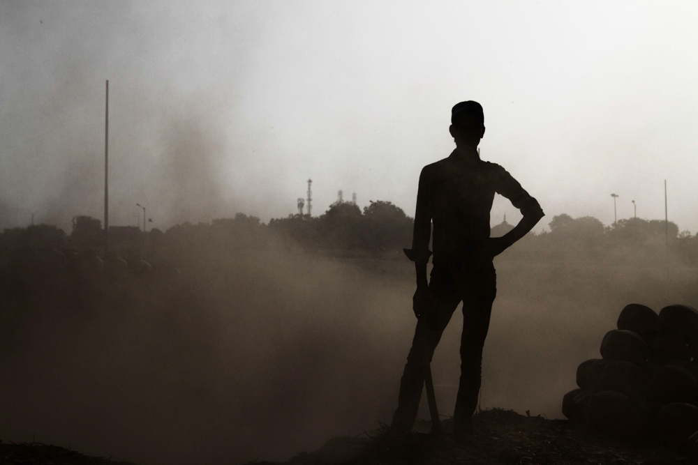I do like silhouettes and this one grabbed my attention. On first sight I thought the subject was, as so often is the case, looking away from the camera towards the dust or smoke. Then I realised, I think, that he was in fact looking straight towards the camera. It is this uncertainty in my mind, that really asks attention and makes it an excellent image.