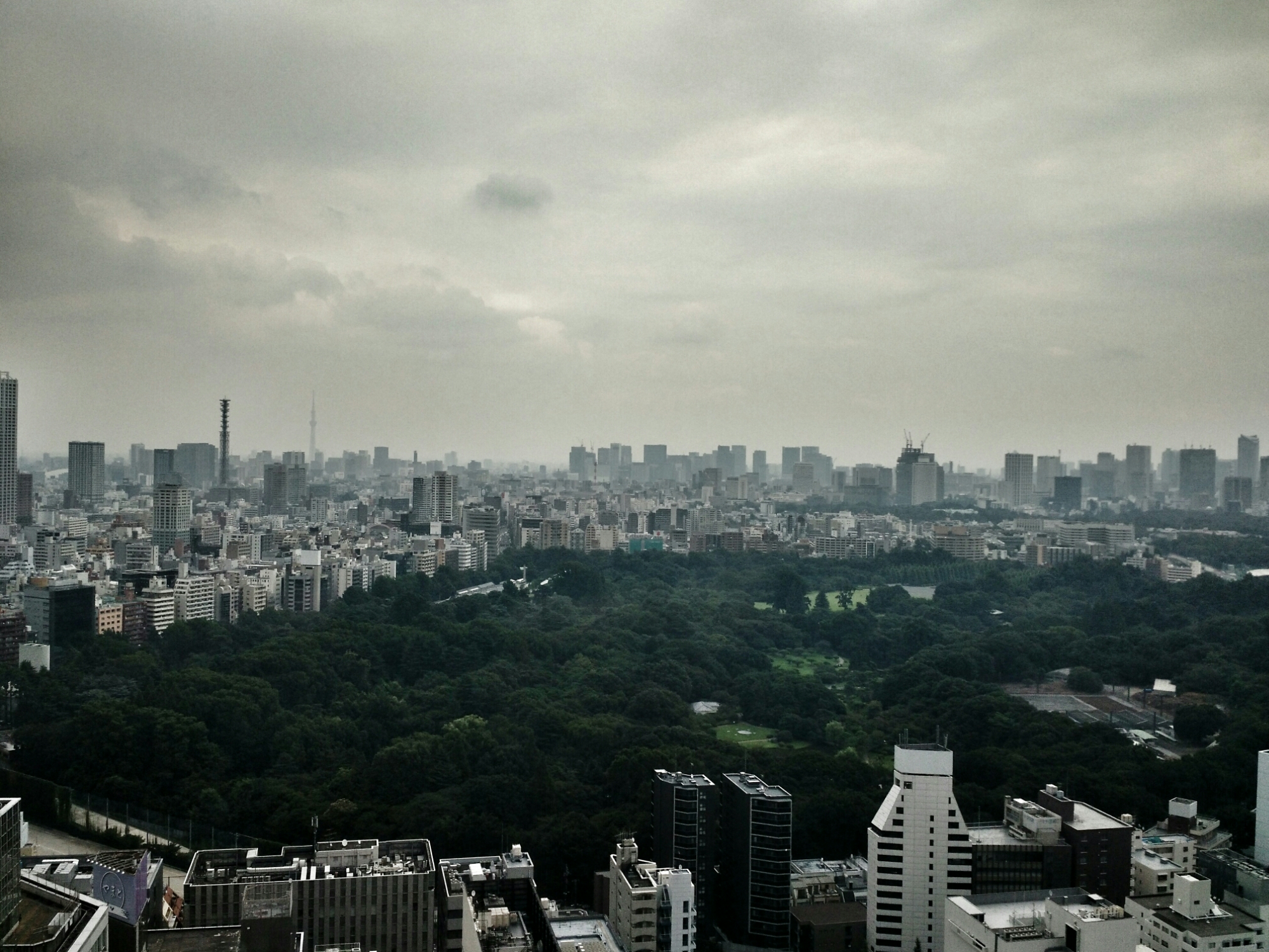 Great view. Interesting to see all these trees surrounded by high buildings. You must have, or have had, a great time in Japan.