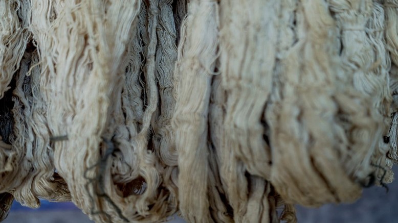 Washed fabric is hanging in the sun. Softness, textures of handwoven fabric is hard to match by machine woven fabric.